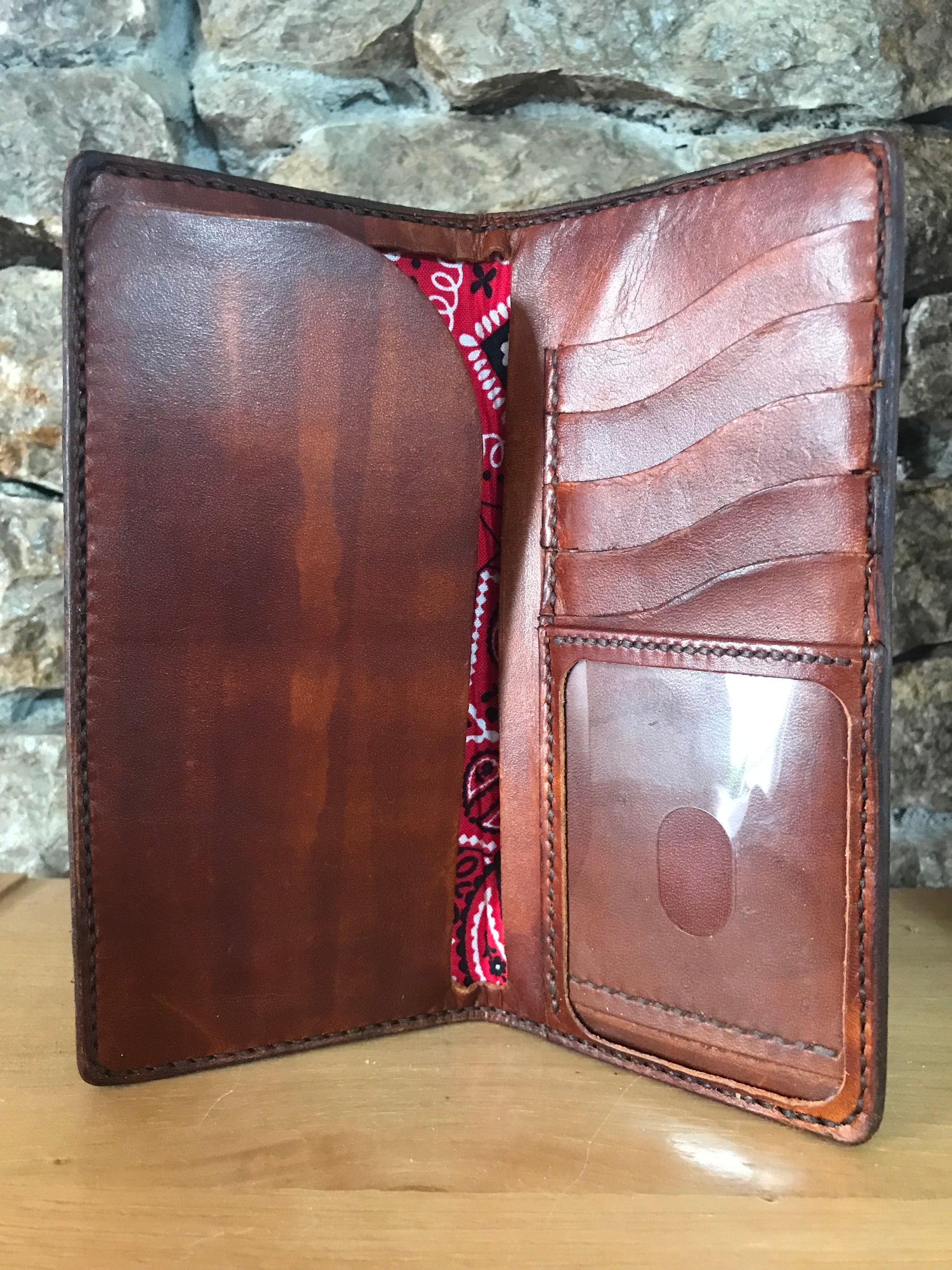 The "Marshall" wallet is a stunning piece that you'll be proud to carry around. It's made from exquisite leather with six card slots, including an ID slot, plus two cash/receipt pockets. Every wallet is custom made to order, ensuring a perfect fit.